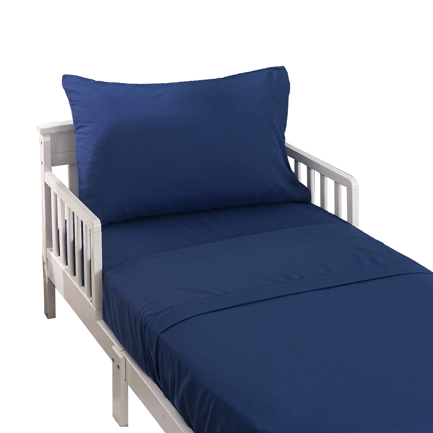 - PERFECT FIT – This set includes a flat sheet (60” by 45”), a fitted sheet (52" by 28") and a pillowcase (30" by 20"). The fitted sheet is made to fit a standard size (52” by 28”) toddler mattress or crib with an 8” pocket. We have tested it on a ton of crib/toddler mattresses, so you don’t have too.